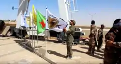 The Raqqa Hawks Brigade (Arabic: لواء صقور الرقة, romanized: Liwa Suqur al Raqqa), also known as Raqqa Falcons Brigade, is a primarily Arab militia, composed mostly of Raqqa natives,[12][7] that is part of the Syrian Democratic Forces (SDF) and fights against the Islamic State of Iraq and the Levant (ISIL). The unit's stated goal was to recapture its home city from ISIL,[3] which it achieved by taking part in the Battle of Raqqa (2017). The Raqqa Hawks are considered to have sympathies for and connections with Bashar al-Assad's government.[11]