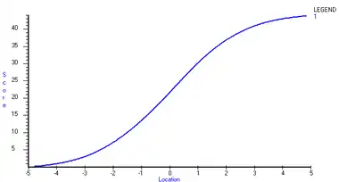 For dichotomous data such as right/wrong answers, by definition, the location of an item on a scale corresponds with the person location at which there is a 0.5 probability of a correct response to the question. In general, the probability of a person responding correctly to a question with difficulty lower than that person's location is greater than 0.5, while the probability of responding correctly to a question with difficulty greater than the person's location is less than 0.5. The Item Characteristic Curve (ICC) or Item Response Function (IRF) shows the probability of a correct response as a function of the ability of persons. A single ICC is shown and explained in more detail in relation to Figure 4 in this article (see also the item response function). The leftmost ICCs in Figure 3 are the easiest items, the rightmost ICCs in the same figure are the most difficult items.
