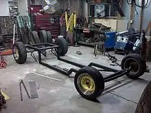 In many cases, the front suspension is mounted a considerable distance forward of the radiator, a practice that may be derived from the construction of early drag racing cars.[2]