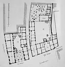 The origins of the New Town Hall can be traced back to a duplex house. The one on the right (Zum Rechen) was commissioned by the physician Joachim Schiller von Herdern and built between 1539 and 1545.[4] The university bought the adjacent house (Zum Phönix) and turned both houses into a complex of buildings.