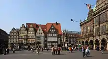 The Raths-Apotheke (literally: Council Apothecary) is a listed building on the Market Square (Marktplatz) in Bremen, Germany. After suffering war damage, the building was restored with two gables in the Neobaroque style in 1958, re-establishing the square's sequence of gabled buildings dating from the 1820s.