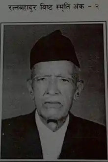 Sir Ratna Bahadur Bista (1910–1990) was the fifth Chief Justice of Nepal. He was born in Dadeldhura to an aristocratic family that was given land grants in Sudurpashchim Province circa 1911 during a hunting trip by King George V of the United Kingdom and Chandra Shumsher Jang Bahadur Rana, the Prime Minister of the Rana Dynasty.[1] He went on to become the 5th Chief Justice of Nepal, in office from 26 July 1970 to 6 August 1976.[2][3][4] He was appointed by the then-king of Nepal, Mahendra. He was responsible for the Summary Procedure Act 1971. The Committee that he established recommended for the establishment of High Courts in different regions which resulted in the creation of a four tiered judicial structure with one additional tier in the middle- "the Regional Courts."[3]