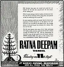 Ratna Deepam (transl. Jewelled Lamp) is a 1953 Indian Tamil-language film directed by Debaki Bose.[2] The film stars Abhi Bhattacharya and Anupama.