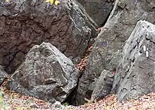 Will Warren's Den, a boulder cave located on the west side of the mountain, is a historic landmark of the town of Farmington. A plaque affixed to the cave reads, "Said Warren, according to legend, after being flogged for not going to church, tried to burn the village of Farmington. He was pursued into the mountains, where some Indian squaws hid him in this cave." The cave is accessible from the Metacomet Trail.[7]