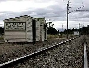 The Raurimu Spiral is a single-track railway spiral, starting with a horseshoe curve, overcoming a 139-metre (456 ft) height difference, in the central North Island of New Zealand, on the North Island Main Trunk railway (NIMT) between Wellington and Auckland. It is a notable feat of civil engineering, having been called an "engineering masterpiece."[1] The Institute of Professional Engineers of New Zealand has designated the spiral as a significant engineering heritage site.[2]