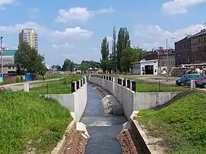 The river is notorious for being heavily polluted. Reported to be crystal clear in 1875, the industrialization of Silesia caused the river to become so polluted that all the fish died out by 1893. The continued growth of industry and cities throughout the 20th century, combined with little effort towards preserving the environment, continued to degrade the quality of the water in the river. In 1992, the river, leaving Katowice, was claimed to contain only 14% water,[3] and a popular joke among the local citizens was to warn each other 'not to throw a lit match into the river'. Currently the upper part of the river is officially classified as sewage and the plan is to direct the entire river flow through a treatment plant.[4] In the 1990s plans to improve water quality and restore the ecology of the river were begun. So far new sewage treatment plants have been completed, and the plan is supposed to significantly improve the river's quality by 2010.