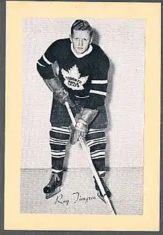 Raymond Charles Timgren (September 29, 1928 – November 25, 1999) was a Canadian professional ice hockey forward, nicknamed the "Golden Boy". He played in the National Hockey League with the Toronto Maple Leafs and Chicago Black Hawks between 1948 and 1955.