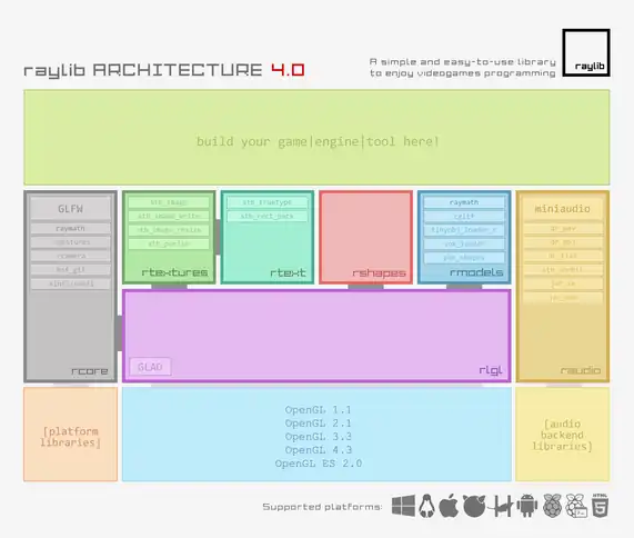 raylib consists of several modules that are exposed to the programmer through the API.
