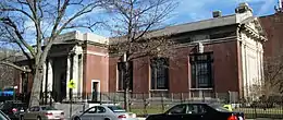 In 1909, Almirall designed what might have been his masterpiece, the Beaux-Arts classical style Brooklyn Central Library which was expected to be a major example of the City Beautiful architectural style in that city. But money was short, and construction did not begin for several years. Soon after, money ran out and only the west wing wall was actually built. In 1937, the project was renewed and the New York firm of Githens & Keally was hired to redesign the building in the Modern Classical style. Almirall’s original scheme was abandoned in favor of the new one and the redesigned library was completed in 1941.[5]