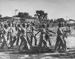 During the period November 1947–August 1948, when Hyderabad was under a Standstill Agreement with India, the Indian government made repeated demands to the Nizam of Hyderabad to disband the Razakars, which were all turned down. In the eventual armed invasion launched by India, dubbed a 'police action', the Razakars formed the main resistance to the Indian Army.[3] The Nizam surrendered and agreed to disband the Razakars.[4] Qasim Razvi was initially jailed and then allowed to move to Pakistan where he was granted asylum.[5]