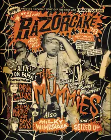 March 2001 saw the first issue of the print edition of Razorcake. The inaugural issue was the only one to bear a newsprint cover. Every issue since the first has had a glossy cover. As opposed to the cover, the focus of the content within Razorcake has never changed. Also, the fanzine's circulation has more than doubled (to 6,000) since the first issue.[11][12] August 2021 saw the 123rd issue of Razorcake, making it the longest continually printed DIY punk zine in the United States still in operation.[13]