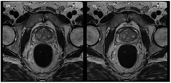 High-performance, low-field MRI scanners are also an area of development.[10] These scanners operate at relatively low magnetic field strengths, such as 0.35 T or 0.55 T. Many RT-MRI acquisition sequences, such as bSSFP, experience significant off-resonance effects. Off-resonance effects increase linearly with B0 field strength, so minimizing B0 also minimizes these effects that can lead to artifacts and image distortion.[36] This allows for longer TRs, which then opens the door for a wider range of k-space sampling methods and sequence designs.[10] Finally, lower strength MRI scanners will reduce the dangers associated with heating of metallic implants and decrease the cost of MRI.[37]