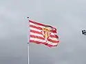 The club's official flag consists of nine equal horizontal stripes of red (top and bottom) alternating with white in a rectangular field in a 2:3 ratio. The club logo is displayed in the centre.