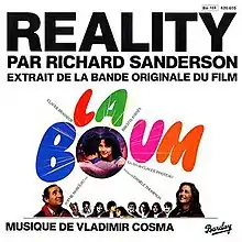 "Reality" is a song by French composer Vladimir Cosma, performed by English singer Richard Sanderson. It was released in 1980 as part of the soundtrack to the popular 1980 French film La Boum, which starred French actress Sophie Marceau (who later starred in popular films such as Academy Award-winning Braveheart and James Bond franchise The World Is Not Enough). It also served as the theme song to the 2011 Korean film Sunny.