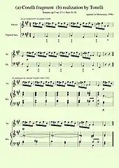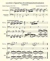Bach's BWV 1079 was composed at the end of the Baroque era. Though it has a figured bass, its harmonies are demanding. Ex. 12 contains a written out realization by Bach's former pupil Johann Kirnberger.[91]