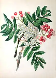 Rebecca Hey's first book was called The Moral of Flowers, which was an encyclopaedia of English flowers. Each article was written by her and was preceded by a colour engraving of a painting of the flower by artist William Clark, former draughtsman and engraver of the London Horticultural Society.[5] In the preface Hey credits the authors Sir J. E. Smith and Mr Drummond for the botanical information included in the descriptions.[6] Moral of Flowers focuses on flower poems that convey religious and moral messages, with a modest amount of botanical information including flowers' scientific names. Hey’s purpose is to “draw such a moral from each flower that is introduced as its appearance, habits, or properties might be supposed to suggest".[7] The book was popular and was reprinted in 1835 and 1849.[8]