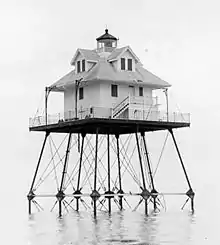![]() The Rebecca Shoal Lighthouse after it was automated, with the lower landing decks removed. | |