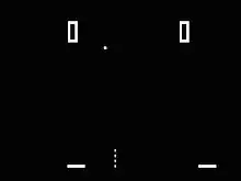 If the ball reaches the bottom of the screen without being deflected by a paddle, bounces on the same paddle four times, hits the net, or is deflected into the side of the screen, then a sound is played and a point is awarded to the player on the opposing side. After a point is scored, the ball is dropped from the top of the screen again. Every two times the ball is bounced across the net by the players without a point being scored the net is grows slightly higher, up to ten times; it resets in height when a point is scored. Two large numbers at the top of the screen record the points for each player. Each game costs a quarter, and machines can be set to play one or two rounds per game. Rounds can be set to play until a player reaches either eleven or fifteen points. Whenever a game is won, the game resets into its "attract mode", where the paddles are stretched across the screen, allowing the ball to bounce along to the side and be re-dropped indefinitely.[1] Atari subsidiary Kee Games made a version of the game named Spike, which was functionally almost identical with the addition of a "spike" button; this button made the player's paddle jump into the air, potentially bouncing the ball into a downward trajectory like a volleyball spike.[4]