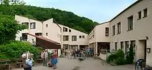 In the town itself, farming, somewhat limited by the steep slopes and the lean soils, always played a subordinate role. Now, however, even the outlying centre of Roßbach is purely residential, although some 90 ha of its cropland and meadowland is worked by the CJD. The last full-time farming operation within Wolfstein's limits is run by the family Sonn at the Reckweilerhof.[29]
