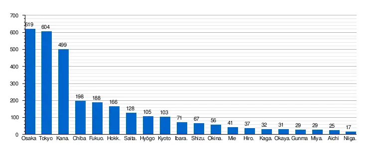 The cities of Chiba and Yokohama made a similar recognition agreement in January 2021, effective on 1 February 2021.[106] In early April 2021, the cities and towns of Amagasaki, Ashiya, Inagawa, Itami, Kawanishi, Nishinomiya, Sanda and Takarazuka, all in Hyōgo Prefecture, agreed to recognize each other's certificates.[107] Likewise, in May 2021, 12 municipalities in Tokyo, Adachi, Bunkyō, Edogawa, Fuchū, Koganei, Kokubunji, Kunitachi, Minato, Nakano, Setagaya, Shibuya and Toshima, agreed to mutually recognize their certificates.[108] Upon establishing its own partnership registry in November 2022, Tokyo Metropolis recognized all partnerships previously registered in Tokyo's wards and cities.[109]