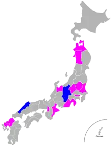 On 20 November 2020, Governor Eikei Suzuki of Mie Prefecture announced his intention to introduce a partnership system before the end of the year.[77] The system was introduced on 1 September 2021, with the first couple issued a certificate that same day in Tsu.[78][79] Saga Prefecture started its partnership oath system a few days earlier, on 27 August 2021.[80][81] Governor Yoshinori Yamaguchi praised the move.[82] In November 2021, the government of Aomori Prefecture announced its intention to introduce a partnership system on 7 February 2022.[83] A partnership oath system has also been in effect in Akita and Fukuoka prefectures since 1 April 2022.[84][85] On 15 February 2022, Governor Tomikazu Fukuda of Tochigi Prefecture announced he would introduce a partnership system in fall 2022;[86] it was established on 1 September 2022.[87]