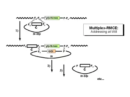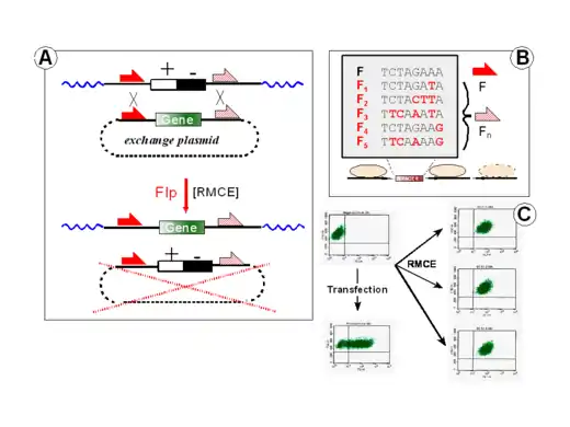 - Turan, S.; Kuehle, J.; Schambach, A.; Baum, C.; Bode, J. (2010). "Multiplexing RMCE: Versatile Extensions of the Flp-Recombinase-Mediated Cassette-Exchange Technology". J. Mol. Biol. 402 (1): 52–69. doi:10.1016/j.jmb.2010.07.015. PMID 20650281.