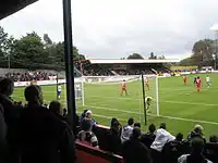 This is the main stand of the Ground along one side of the pitch.[11] It houses players changing rooms and the club's director's box and media center. Adjoined to the North stand is the club offices, which were used by both Aldershot F.C. and Aldershot Town F.C. directors. There is also a conference room and bar adjacent to the offices and behind the North stand which was built in the early 2000s. Originally it was used as a bar for supporters on matchdays until the club acquired the Black Bull Inn during the 2007–2008 season. As a result, it is mainly used for corporate hospitality.[12]