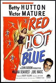 Red, Hot and Blue is a 1949 American musical comedy film starring Betty Hutton as an actress who gets mixed up with gangsters and murder. Frank Loesser wrote the songs and plays a key role.