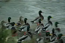 The Red Cedar River is a familiar campus landmark at Michigan State University. The name of the river is featured in the first line of MSU's fight song, and MSU students can be found studying in the parkland along its banks. A number of student activities centered around the Red Cedar over the course of MSU's history, including freshman vs. sophomore "tug-o-war" spanning the river and a Water Carnival featuring student made floats drifting in procession.[17] People on campus frequently feed the large community of mallard ducks that congregate near the river.[18][19]