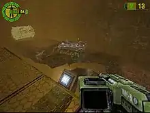 Parker traverses through the Ultor complex, eliminating any resistance Ultor throws at him, and even (with the help of Orion, a high-ranking Red Faction member) kidnapping a high-ranking Ultor administrator, Gryphon, for Eos, leader of the Red Faction.[16] Parker learns from Gryphon about Dr. Capek, who created "The Plague". Capek has been experimenting with nanotechnology, and the Plague is a side-effect of injections at the miners' annual medical checkup. Hendrix directs Parker to Capek's secret underground laboratory, where he and Eos meet up and take down Capek. As Capek dies, he tells Eos there is a cure for the Plague but refuses to tell her how to make it and bluntly states "Hope you all Die!" With Capek dead the lab's self-destruction sequence initiates, Eos stays behind to find the files on the cure while Parker continues to the Communications center.[17] After sending a distress call to the Earth Defense Force, Parker destroys the missile defense system, so that he can stow away on a shuttle to an Ultor space station in Martian orbit to deactivate a laser defense system without getting shot down.[18]