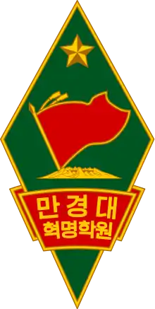 Red Flag Mangyongdae Revolutionary School[2] is an elite school[3] in Mangyongdae district of Pyongyang, North Korea.[4] Established in 1947,[5] it is a special education school with access only to the Workers' Party of Korea, Korean People's Army, administrative and high-ranking officials’ families.[4][6] Originally, the school was called the Pyongyang School for the Bereaved Children of Revolutionaries(평양혁명자유가족학원), which was to "receive children of fallen revolutionaries" and "educate their children and train them into fine revolutionaries after the independence of Korea.[7] It was located at Kan-ri, Daedong, South Pyongan. After the formal establishment of North Korea it was moved to Pyongyang and there the first statue of Kim Il Sung was erected, according to North Korean authorities, at the suggestion of Kim Jong-suk, Kim Il-sung's wife.[8]