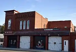 The Red Oak Firehouse and City Jail is a historic building located in Red Oak, Iowa, United States. The Red Oak Fire Company was formed in 1876 and a shed was built to house its equipment. The present Late Victorian style brick structure was built by the city in five stages.[2] A two-story firehouse, which housed the hand-drawn fire carts and other firefighting equipment, was completed in January 1898. The two-story City Jail was architecturally integrated into the original structure in 1901. It was operated by the city marshal to house those who broke municipal ordinances, and to provide a bed and a meal to those who were homeless. Another two-story addition was completed in 1907. It was a stable to house the horses that pulled the new firefighting equipment, which was housed in another addition that was built at the same time on the south side of the structure.