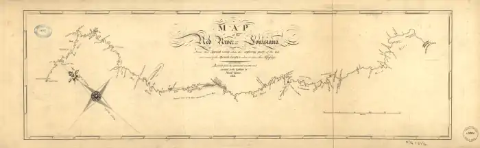 After acquiring the lands of the Louisiana Purchase in 1803, Jefferson commissioned military groups to explore the unfamiliar territory and to collect scientific data about flora and fauna, topography, and ethnography of the many Native American peoples.[1] By sending a group of explorers up the Red River, Jefferson wanted to verify reports that the river could provide a water route to Santa Fe in New Mexico (then part of New Spain). Other goals were to build trade and political relationships with the various tribes of American Indians, and to locate the Louisiana Purchase's southwestern and western borders with New Spain.[1]