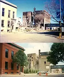 The dikes in the low-lying Lincoln Drive neighborhood of Grand Forks were the first to break, doing so early on April 18, as the river kept rising.[7] Other dikes in the Grand Forks and East Grand Forks area failed that day and the next, flooding thousands of homes. During this time, Grand Forks mayor Pat Owens ordered the evacuation of more than 50,000 people, much of the population of the city. This was the largest evacuation in the United States since the evacuation of residents in Atlanta, Georgia during the Civil War.[8]