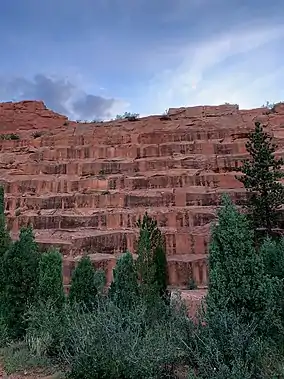 Red Rock Canyon Open Space is a 1,474-acre (2.3 sq mi; 6.0 km2) city park in Colorado Springs, Colorado. It is situated on the west side of the city, adjacent to Manitou Springs and south of U.S. Route 24. The park consists of a series of parallel ridges (called "hogbacks") and eroded canyons. While these ridges, relatively low compared to other in the region, include a continuation of the same sandstone rocks of the Fountain and Lyons formations that make up the Garden of the Gods a few miles to the north, most of the other rock formations also associated with the geology of the Colorado Front Range can be accessed within a short walking distance.
