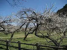 Mokichi Okada began negotiations to purchase the screens in 1953 with the descendants of the daimyōs of the Tsugaru clan, who may have been the original owners; the transfer was concluded in 1954.[8] The screens reside at the MOA Museum of Art in the city of Atami in Shizuoka Prefecture, along with the rest of Okada's collection.[10] The museum displays the screens a month per year in late winter, the season when the plum blossoms bloom. Nearby is a garden reproduction of the screens' subject: two hillocks dotted with 360 plum trees, the number of plum trees said to surround the shrine of Lin Bu, a Chinese poet renowned for writing about plum blossoms. The display attracts large crowds.[11]