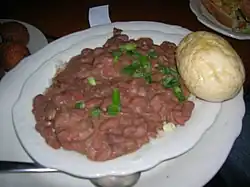 The similar vegetarian dish rajma chawal[4] (which translates literally to red beans and rice) is popular in North India. Red beans and rice is also a dietary staple in Central America, where it is known as arroz con habichuelas. The dish is popular in Cuban, Puerto Rican, Dominican, Haitian and Jamaican cuisine as well.