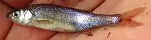 Redfin shiners reach sexually maturity at the age of two to three years. Most individuals of this species only spawn one summer since the life span of this fish is only three years. Spawning occurs from the beginning of June through the middle of August in shallow sunfish nests. The redfin shiner spawns at the same time and in the same locations as many sunfish species. While redfin shiners and sunfish, most often the green sunfish (Lepomis cyanellus), are able to coexist, they still compete against each other for space on the spawning beds.[5] Redfin shiners and sunfish are able to coexist on these beds made by the sunfish during the spawn. Average clutch size is not known since the species has been studied very little; however, it is expected that their clutch size would be similar to other members of the family Cyprinidae. Redfin shiners' use of sunfish beds is the primary microhabitat used for breeding. Sunfish beds are utilized because they offer a safe silt-free location where eggs can hatch. Sunfish tend to use sand and gravel when making their nests, which facilitates the protection and viability of redfin shiner eggs by concealing them as well as keeping them up out of the silt. Another great advantage to laying eggs in an occupied sunfish nest is that the sunfish are already there protecting their own eggs. The presence of redfin shiners does not seem to bother the sunfish. Since there is a real lack of research on this species, there are no known human induced activities influencing the species’ life history.[6]