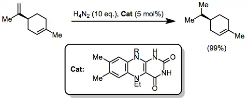 Recently, diimide has been generated catalytically through the oxidation of hydrazine by a flavin-based organocatalyst. This system selectively reduces terminal double bonds.[10]