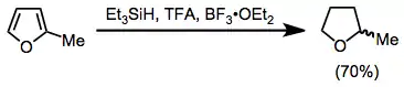 Aromatic compounds may be reduced with TFA and triethylsilane. Substituted furans are reduced to tetrahydrofuran derivatives in high yield.[16]