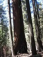 Redwood Mountain Grove is the largest grove of giant sequoia (Sequoiadendron giganteum) trees on earth.[1] It is located in Kings Canyon National Park and Giant Sequoia National Monument on the western slope of California's Sierra Nevada. The grove contains the world's tallest giant sequoia (95 metres (312 ft)).[2] The Hart Tree and Roosevelt Tree grow in the grove and are two of the 25 largest trees by volume in the world. The largest tree is the General Sherman Tree in the Giant Forest grove to the southeast.