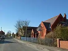 The main street is occupied by several grade II listed buildings, dating back to the eighteenth century. The oldest is the Old Manor, originally an L-shaped building dating from the early part of the century, but the rear wing was demolished in the 1950s. It is constructed of brick, some of which is rendered, with a pantile roof.[4] Elmtree House if a pebbledashed brick structure, with a slate roof, dating from the middle of the century.[5] Reedness Manor House is also brick with a slate roof, but the front was replaced in the nineteenth century, and is pebbledashed,[6] while Reedness Hall is built in plain brick, with a slate roof at the front and pantiles at the back. Both data from mid-century.[7] The Ferry House (was Ferry Inn/Angel Inn) on the junction with Church Lane, is the only one which carries a date. Tie-bar ends on the gables indicate that it was built in 1778, although there have been later additions to the red-brick, pantile-roofed building.[8]