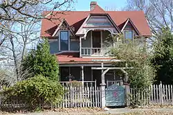 The Reeves House is a historic house at 321 South Wright Street in Siloam Springs, Arkansas. It is a two-story wood-frame structure, with a side gable roof, wood clapboards and shingling, and a stone and concrete foundation. Its front facade is dominated by a central projecting clipped-gable section, whose gable is partially finished in diamond-cut wood shingles, and which shelters a second story porch over a broader first-story porch. Both porches have jigsawn decorative woodwork and turned posts. The house, built in 1895, is one of the finest high-style Queen Anne Victorians in the city.[2]