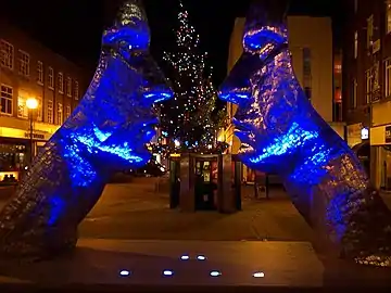 Reflections of Bedford is an abstract sculpture by Rick Kirby, located in Bedford town center, on Silver Street. Commissioned by Bedford Borough Council, it was erected on 12 December 2009. Kirby was chosen after winning a Public National Art exhibition to design a new sculpture for the town. The statue consists of two 5-metre high faces, opposing each other.[1] They are both made of stainless steel, to represent the former mint located on the street.[2]