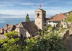 The first Catholic church in the region of Lavaux was established by Marius of Avenches around 590 and was dedicated to Symphorian of Autun, as was the church of Avenches.[1] Later, the church gave its name to the village which was previously called Glérolles (Glerula in Latin).[2]