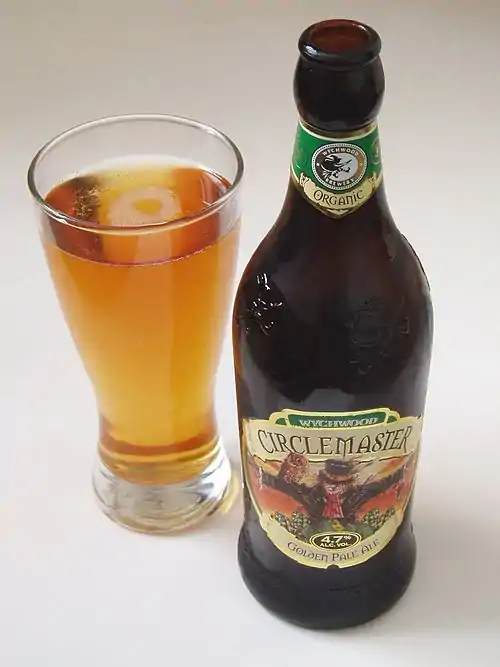 Hobgoblin is the best-known and most popular beer brewed at Wychwood Brewery and was created by Chris Moss. It is 5.2% abv in bottles, 4.5% in cans[4] and 4.5% (previously 5.0%, and before that 5.6%, and originally 6.5%) on cask, and is described by Wychwood as a "Ruby beer".[5] Jeremy Moss, Wychwood's head brewer, describes the drink as "full bodied and well balanced with a chocolate toffee malt flavour, moderate bitterness and a distinctive fruity character with a ruby red glow". It was the first bottled beer in the UK to feature an illustrated label, as opposed to a simple text-based one, and it is currently the second best-selling bottled ale in the UK.
