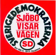 The ban was heavily discussed in the Swedish media. Following the criticism, and after claims that Olsson was associated with the New Swedish Movement,[4] the Centre Party decided in 1988 to exclude Olsson and his companions Börje Ohlsson and Per-Ivar Magnusson from the party. They responded by forming the nationalist Sjöbo Party (Swedish: Sjöbopartiet) in March 1991.[3] In the municipal elections the same year, the party received 31 percent of the votes. This led to Olsson once again becoming Municipal Commissioner, a position he held until 1998, when the party's support was reduced to 15% in the municipal elections.[4] Following Sjöbo party's loss of support, the referendum was overturned by Sjöbo's municipal assembly, and Sjöbo accepted its first refugees since more than a decade in 2001.[1] Although Olsson died in 2005, the party is still active, and in the 2010 municipal election the party received 11.4% of the votes, making it the third largest party in Sjöbo.[12] In 2014 the nationwide anti-immigration party Sweden Democrats became the largest party in parliament elections in Sjöbo Municipality with a 29.96% share of the vote.[13] Sjöbo was the only one of 290 municipalities where that happened and the first time the Sweden Democrats had topped a municipality in its history.