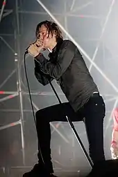 Among the artists who cite Refused as an influence are Linkin Park,[60][61] Duff McKagan of Velvet Revolver and Guns N' Roses,[62][63] Sum 41,[64] Tom DeLonge and Mark Hoppus of Blink-182,[65][66] AFI,[67] Papa Roach,[68][69] Tim McIlrath of Rise Against,[70] Underoath,[2] Enter Shikari,[71] the Used,[72][73] Every Time I Die,[74][75] Norma Jean,[76] Showbread,[77] La Dispute,[78] Nick Hipa of As I Lay Dying,[3] Derek E. Miller of Poison the Well and Sleigh Bells,[79] Geoff Rickly of Thursday, United Nations and No Devotion,[79] Marcos Curiel of P.O.D. and Daylight Division,[79] Jeremy Bolm of Hesitation Wounds and Touché Amoré,[79] Zachary Garren of Dance Gavin Dance and Strawberry Girls,[79] Chris Teti of the World Is a Beautiful Place & I Am No Longer Afraid to Die,[79] the New Transit Direction,[79] the Bloody Beetroots,[79] Justin Beck of Glassjaw and Sons of Abraham,[79] Robin Staps of the Ocean,[80] the Bled,[81] Thomas Williams of Stray from the Path,[82] Brandon Kellum of American Standards,[83] and Jonathan Boulet.[84] The song "H. Ledger" from letlive.'s album Fake History is a "homage" to Refused because the band felt that they "didn't receive proper recognition until they were no longer active."[85][86] British musician Frank Turner stated that The Shape of Punk to Come "shaped my musical path as a musician for a long time" and his group, Million Dead, took their name from a line in the Refused's song "The Apollo Programme was a Hoax".[87][88] Pop punk band Paramore were inspired by the song "Liberation Frequency" and quoted a line of it on their 2007 song "Born for This".[89]