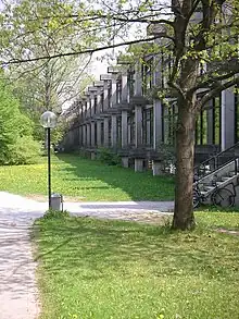 Situated entirely on one central campus, the university is located south of Regensburg's inner city on a small incline south of the Danube River, and directly adjacent to the Regensburg University of Applied Sciences and the A 3 autobahn. The university itself consists of 150 hectares (280 acres) of land.[5]
