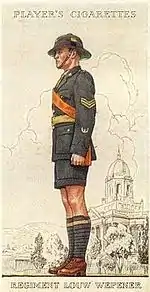 Regiment Louw Wepener was one of six Afrikaans-speaking Citizen Force regiments established in 1934 as part of the expansion of the then Union Defence Force of South Africa.[1] The regiment was named after the Free State commandant, Louw Wepener, who was killed in 1865 during the 2nd Orange Free State—Basuto War at Thaba Bosiu, the former mountain stronghold of Moshoeshoe, founder of the Basuto nation.